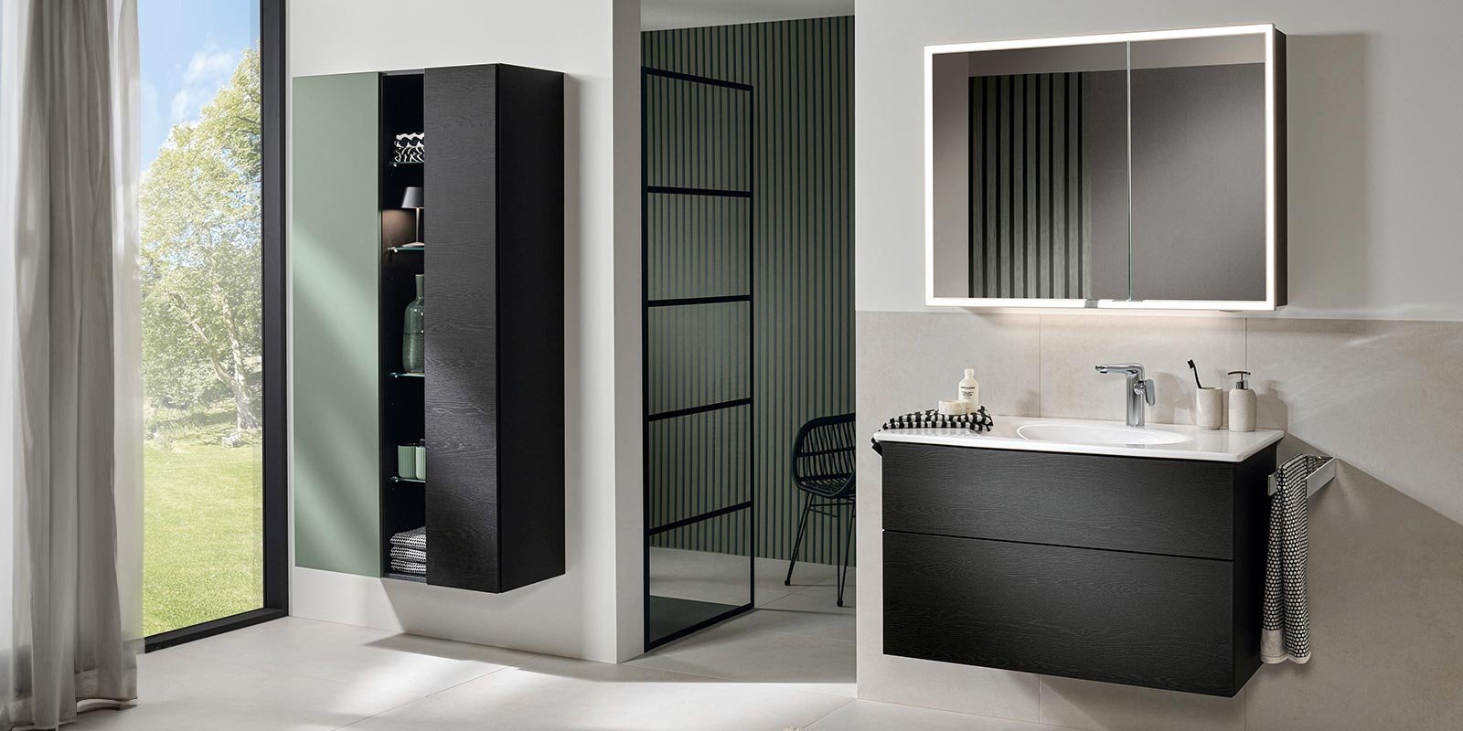 Neben Unterschränke zum organischen Keramik-Waschtisch ANTAO von Villeroy & Boch wurden zwei matte Unitöne in elegantem Rot und natürlichem Grün sowie zwei elegante Holzdekore in hell und dunkel mit ins Portfolio aufgenommen.