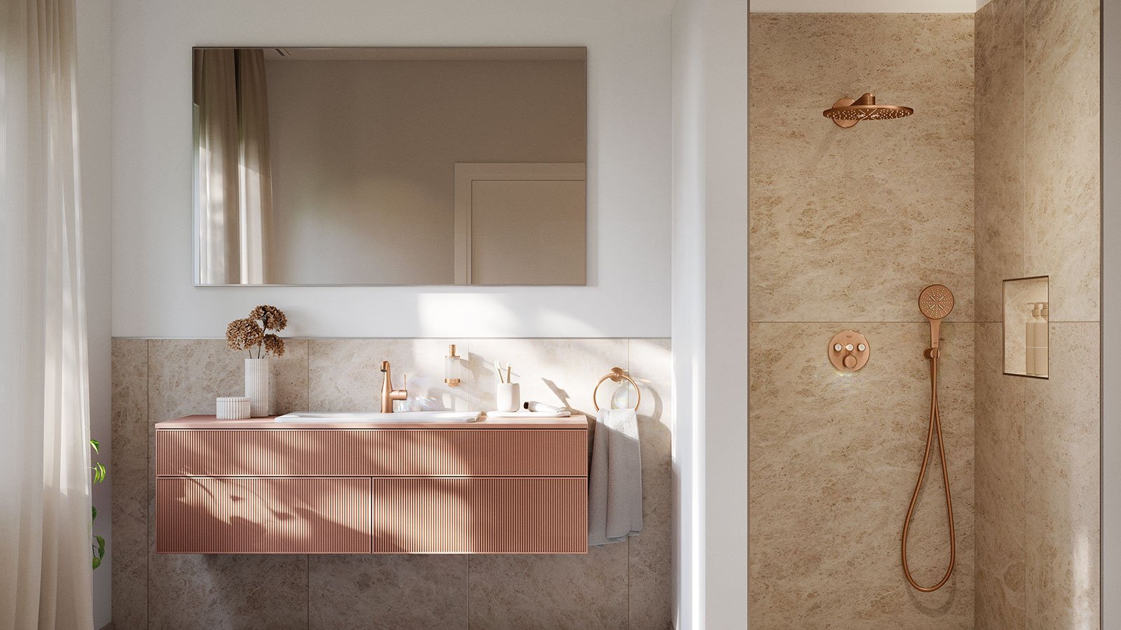 Entdecke die GROHE Colors Kollektion: Vier edle Metallic-Oberflächen, moderne Farbvielfalt und langlebige PVD-Technologie. Für ein Bad, das Design, Qualität und Individualität vereint.