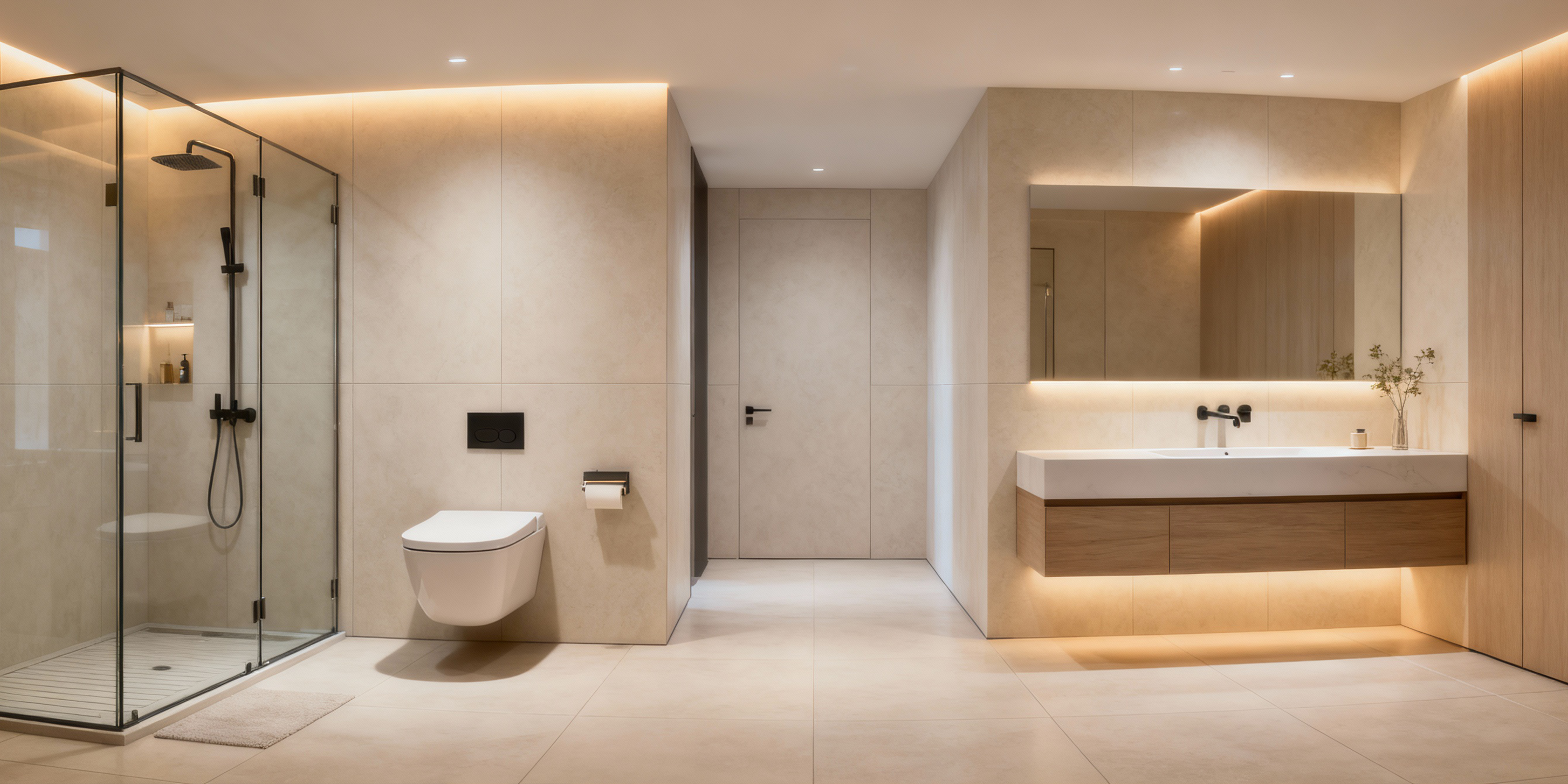 Entdecken Sie die Revolution im Badezimmer-Design: Das fugenlose Bad. Großformatige Fliesen und nahtlose Oberflächen vereinen Ästhetik und Funktionalität für ein modernes, pflegeleichtes Badezimmer.