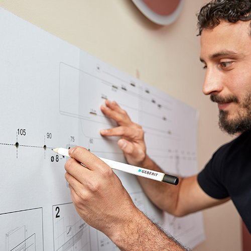 Mit der für alle Mix & Match Serien standardisierten Montageschablone entfällt das zeitaufwändige Ausmessen der Bohrlöcher an der Wand. Das spart Zeit und reduziert Fehler.