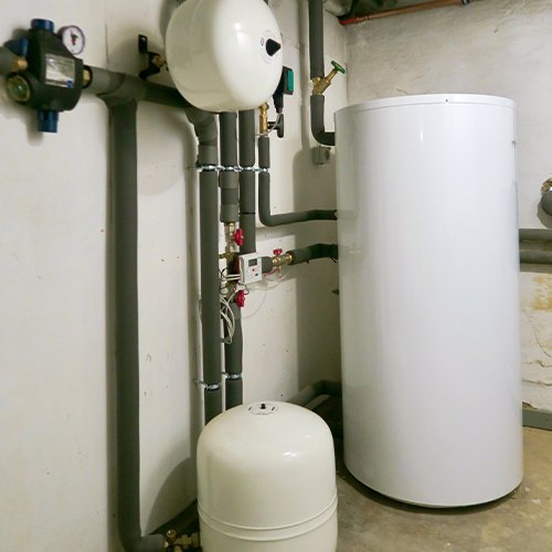 Der Heizungsraum beherbergt alle Komponenten der häuslichen Wärmeversorgung.